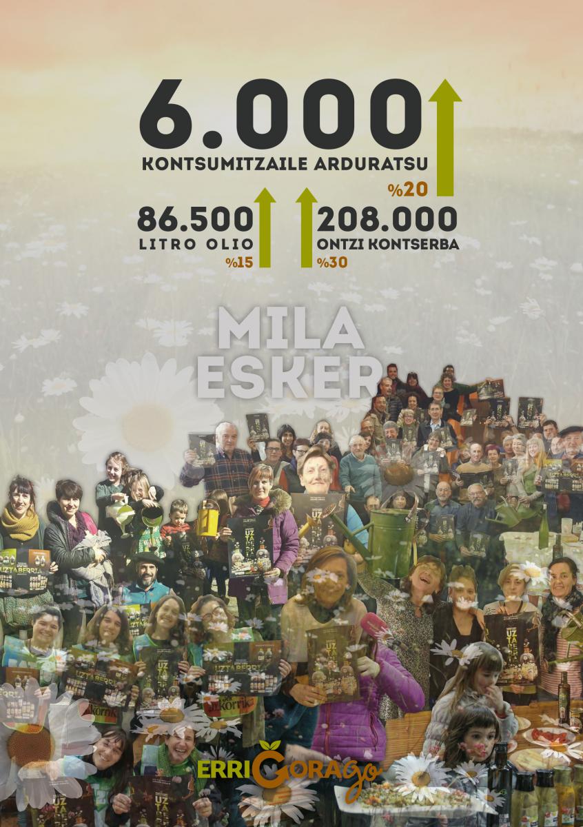 Mila esker nekazariei, uztaberria erein, zaindu eta jasotzeagatik. Mila esker elaboratzaileei, uztaberria eraldatu eta ontziratzeagatik. Mila esker Errigoraren sarekide, lagun eta aliatuei, uztaberriari zubiak eraikitzeagatik. Eta, nola ez, mila esker kontsumitzaileei, uztaberriaz gozatzeko egin duten hautuagatik.
