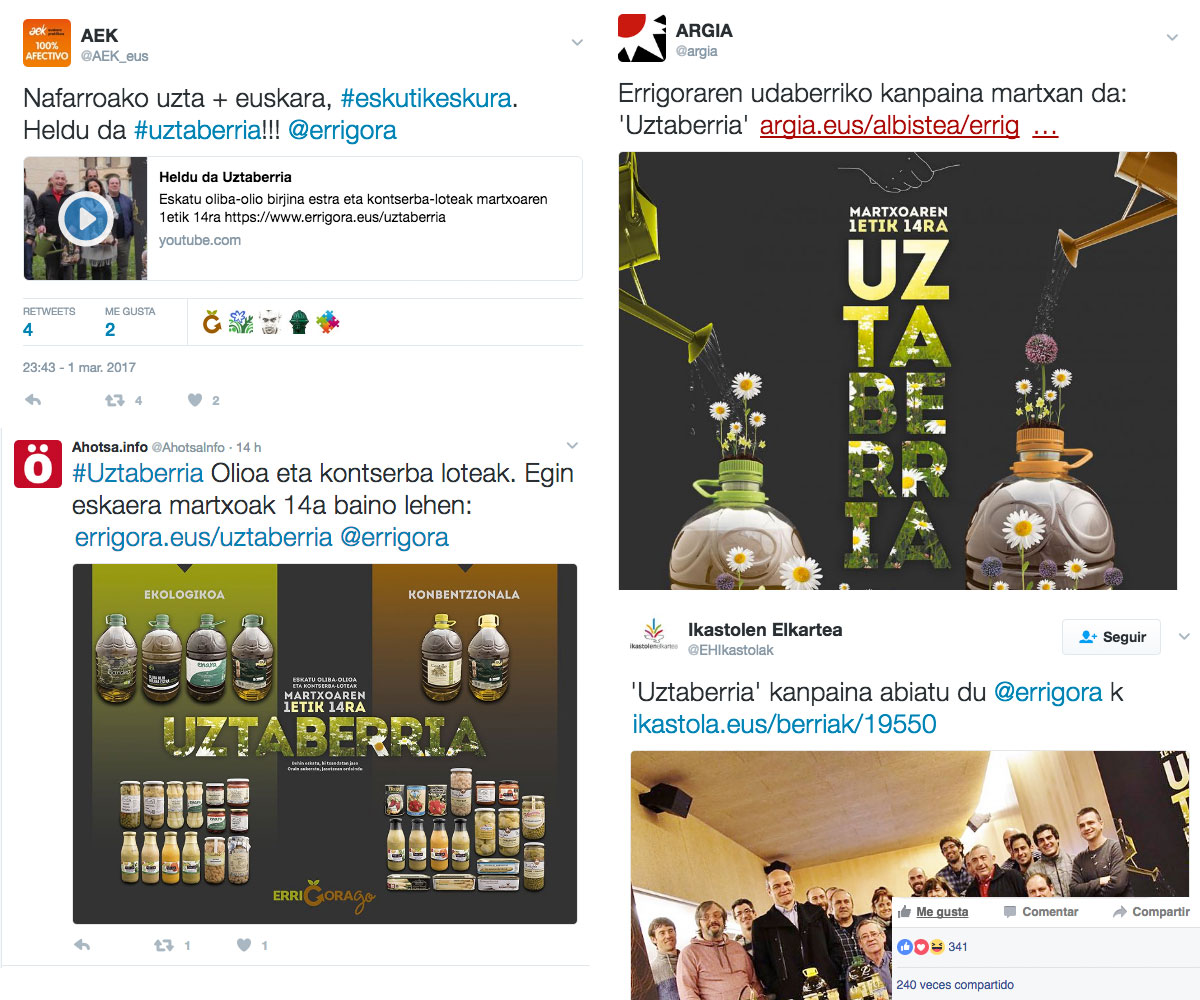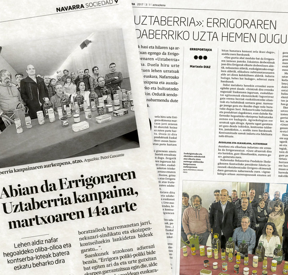 - TVEren Telenavarra tarte informatiboan, 8:40 minutututik aurrera. Kanpainaren aurkezpenaren berri emateaz gain, Ibai Sueskun Errigorako kidea eta Edorta Lezaun ekoizlea eta NNPEKren(Nafarroako Nekazaritza Produkzio Ekologikoaren Kontseilua) presidentea elkarrizketatu zituzten.